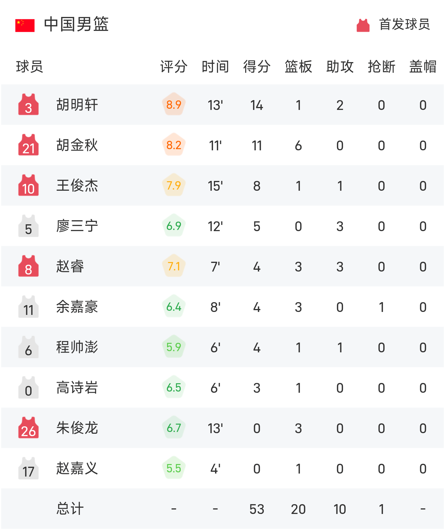 男篮亚洲杯半场:胡明轩命中4记三分,胡金秋11分6板,中国男篮53-31印度男篮